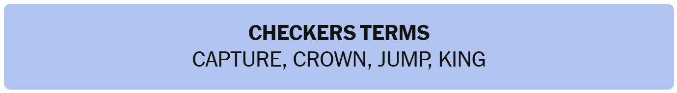 - CHECKERS TERMS – CAPTURE, CROWN, JUMP, KING