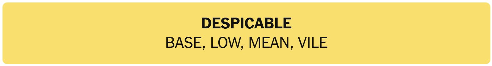 - DESPICABLE – BASE, LOW, MEAN, VILE