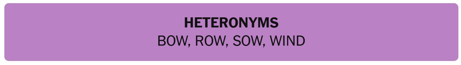 - HETERONYMS – BOW, ROW, SOW, WIND