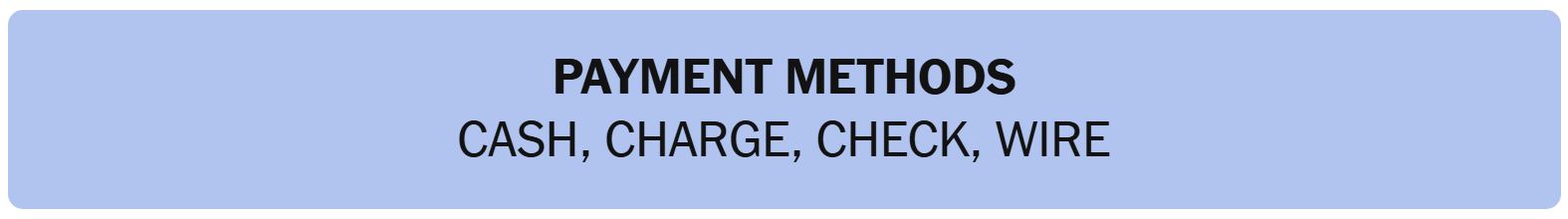 - PAYMENT METHODS – CASH, CHARGE, CHECK, WIRE