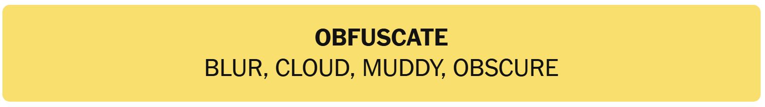 - OBFUSCATE – BLUR, CLOUD, MUDDY, OBSCURE
