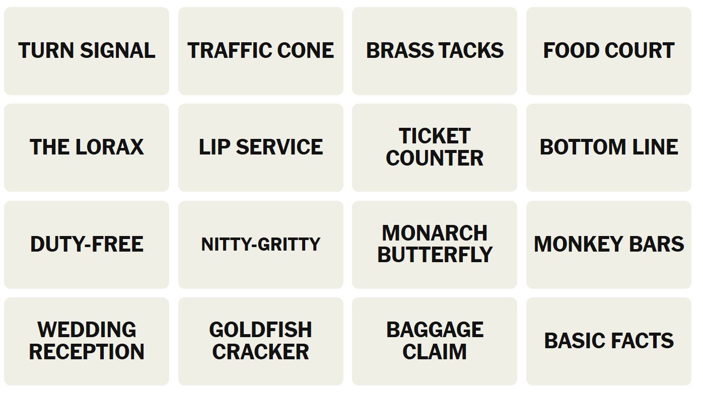 - Hint 2: BOTTOM LINE and BRASS TACKS are in the same group.