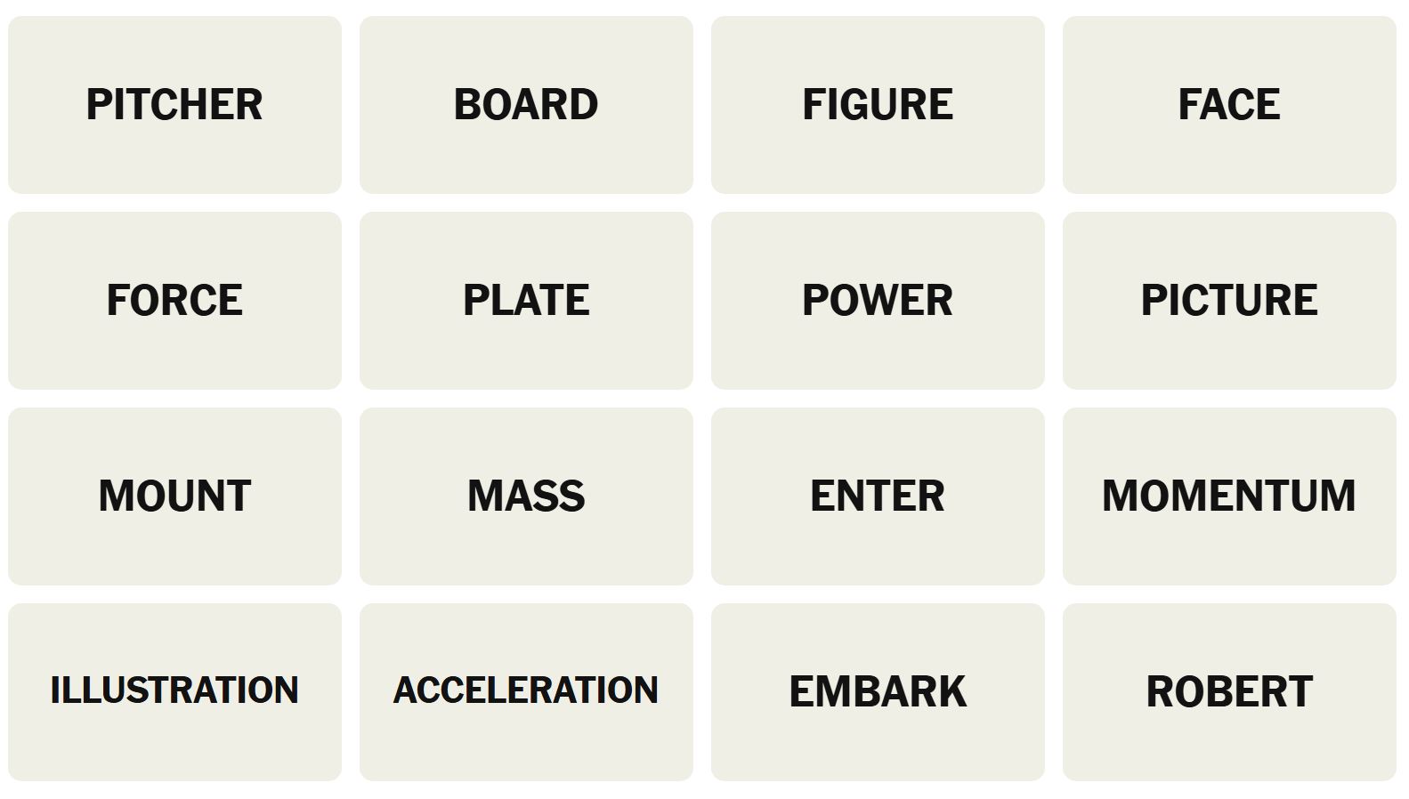 - Hint 2: ACCELERATION and MOMENTUM are in the same group.