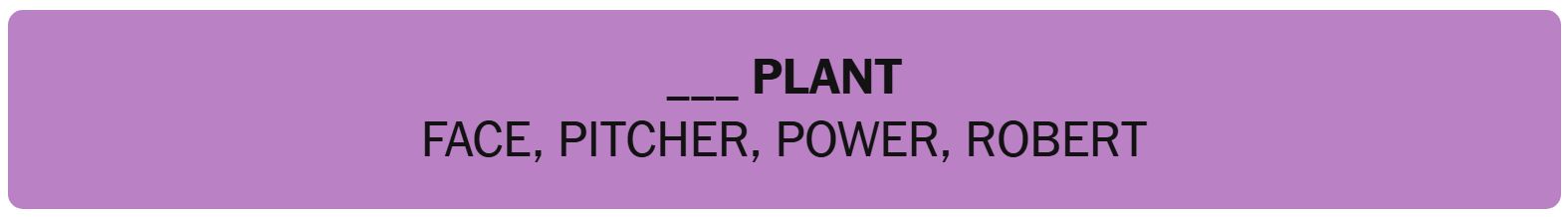 - ___ PLANT – FACE, PITCHER, POWER, ROBERT