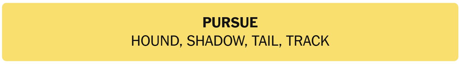 - PURSUE – HOUND, SHADOW, TAIL, TRACK
