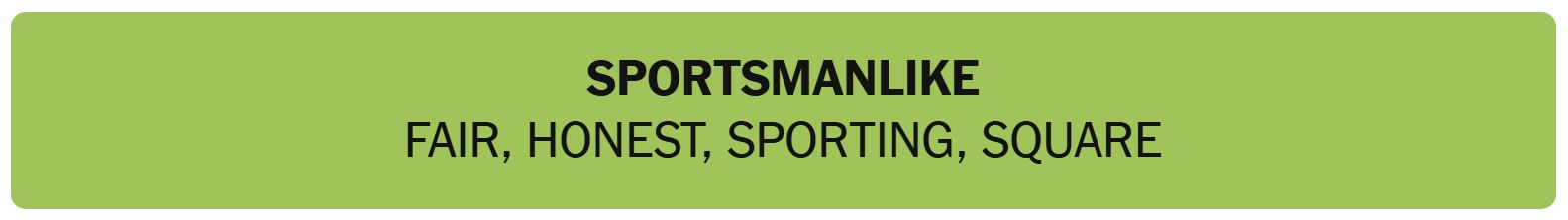 - SPORTSMANLIKE – FAIR, HONEST, SPORTING, SQUARE