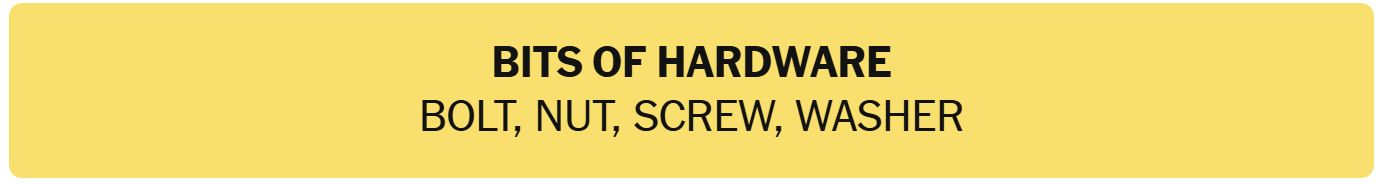 - BITS OF HARDWARE – BOLT, NUT, SCREW, WASHER