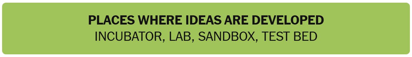 - PLACES WHERE IDEAS ARE DEVELOPED – INCUBATOR, LAB, SANDBOX, TEST BED