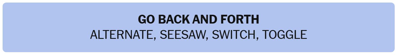 - GO BACK AND FORTH – ALTERNATE, SEESAW, SWITCH, TOGGLE
