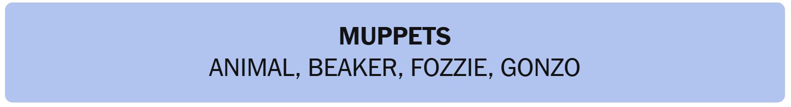 - MUPPETS – ANIMAL, BEAKER, FOZZIE, GONZO