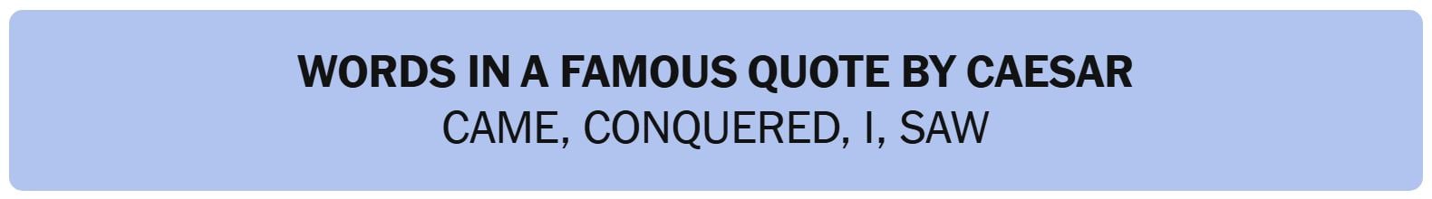 - WORDS IN A FAMOUS QUOTE BY CAESAR – CAME, CONQUERED, I, SAW