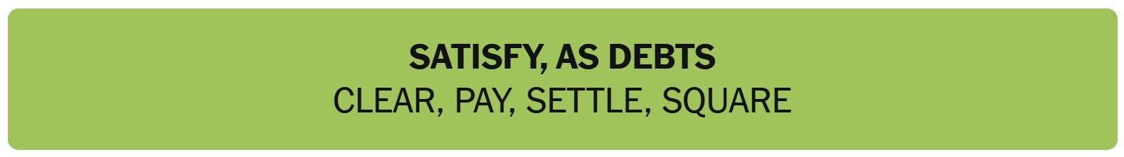 - SATISFY, AS DEBTS – CLEAR, PAY, SETTLE, SQUARE