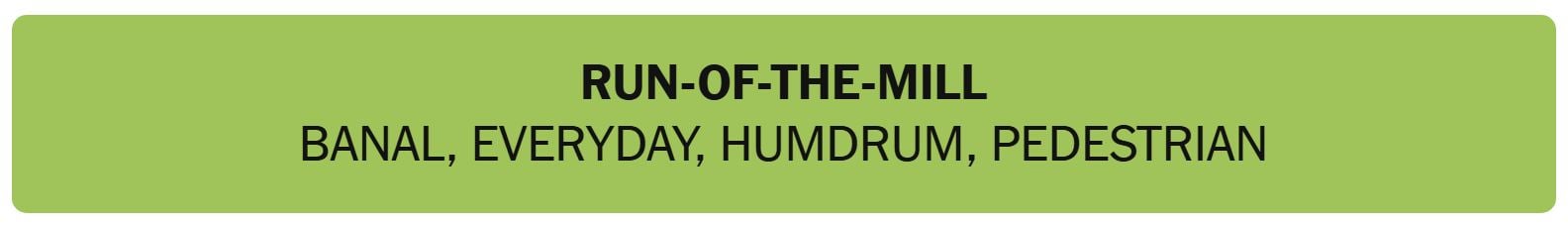 - RUN-OF-THE-MILL – BANAL, EVERYDAY, HUMDRUM, PEDESTRIAN