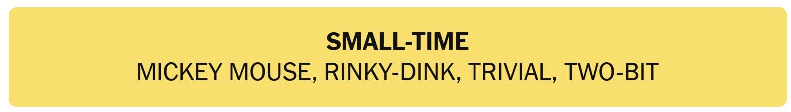 - SMALL-TIME – MICK MOUSE, RINKY-DINK, TRIVIAL, TWO-BIT