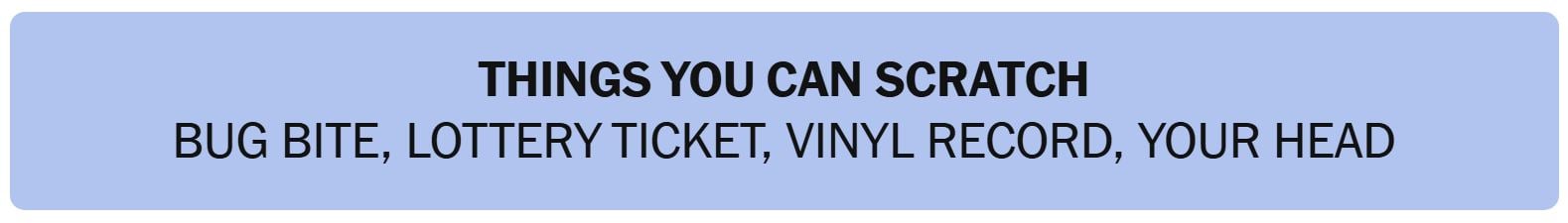 - THINGS YOU CAN SCRATCH – BUG BITE, LOTTERY TICKET, VINYL RECORD, YOUR HEAD