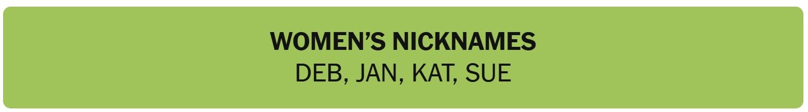 • WOMEN’S NICKNAMES – DEB, JAN, KAT, SUE