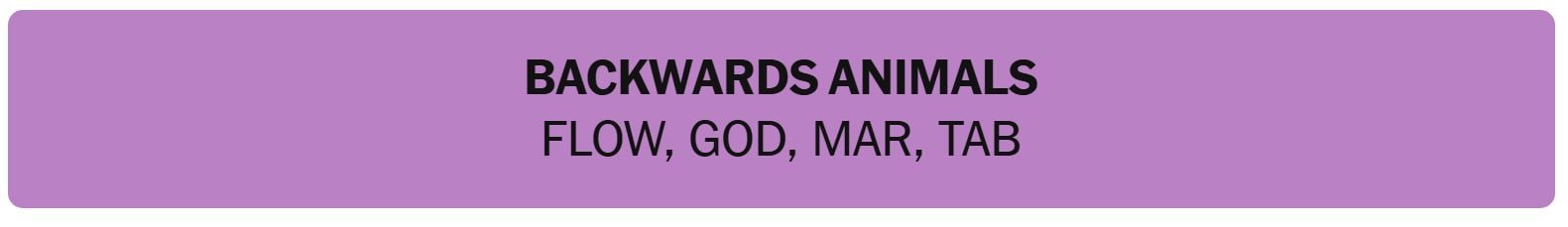 • Hint 4: One group of words is “BACKWARDS ANIMALS“.