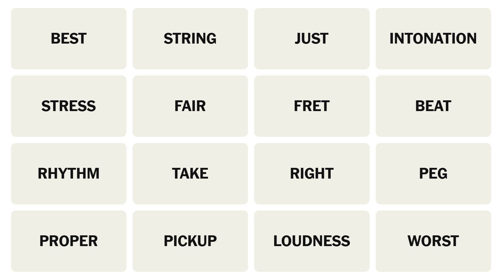 There are sixteen words for the Connection puzzles, which are: