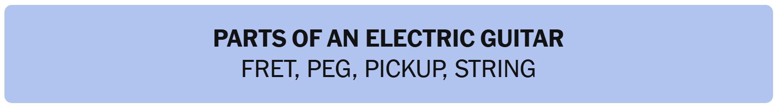 - PARTS OF AN ELECTRIC GUITAR – FRET, PEG, PICKUP, STRING