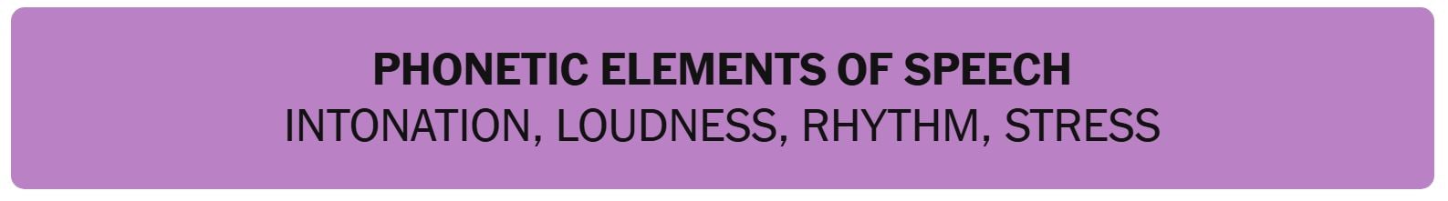 - PHONETIC ELEMENTS OF SPEECH – INTONATION, LOUDNESS, RHYTHM, STRESS