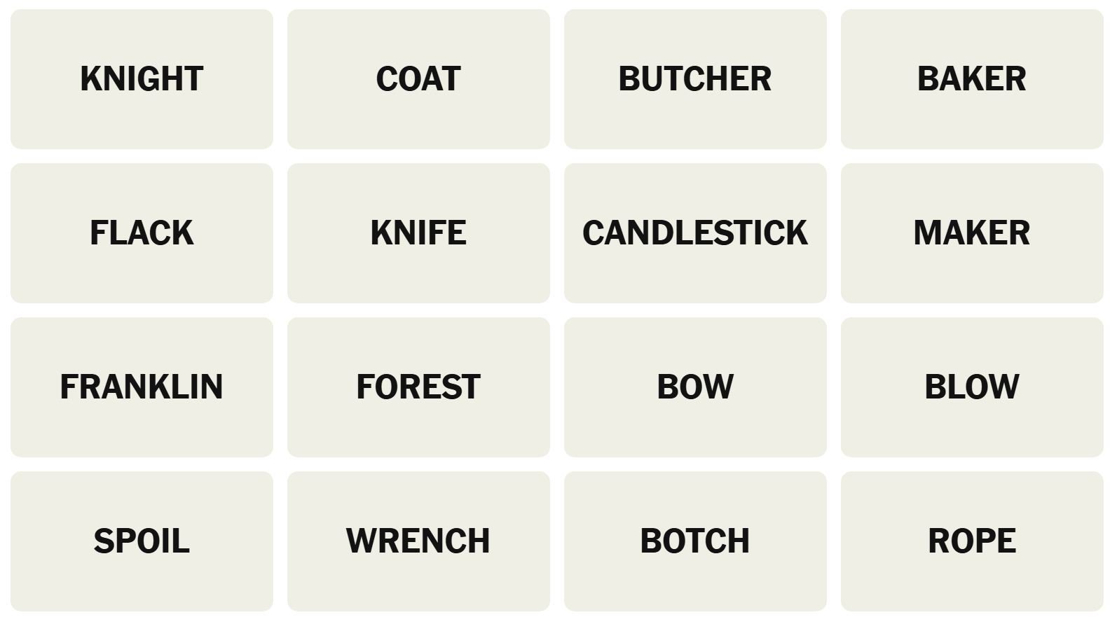 There are sixteen words for the Connection puzzles, which are: