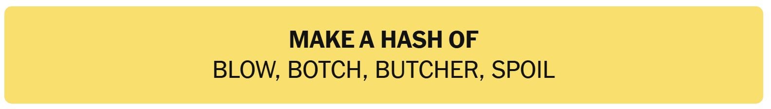 - MAKE A HASH OF – BLOW, BOTCH, BUTCHER, SPOIL
