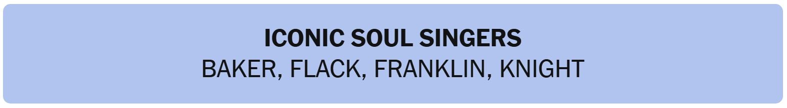 - ICONIC SOUL SINGERS – BAKER, FLACK, FRANKLIN, KNIGHT