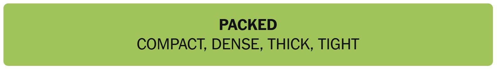 - PACKED – COMPACT, DENSE, THICK, TIGHT