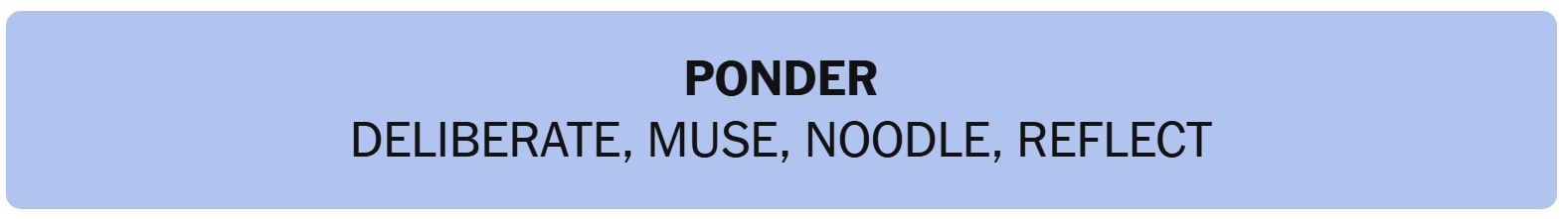 - PONDER – DELIBERATE, MUSE, NOODLE, REFLECT