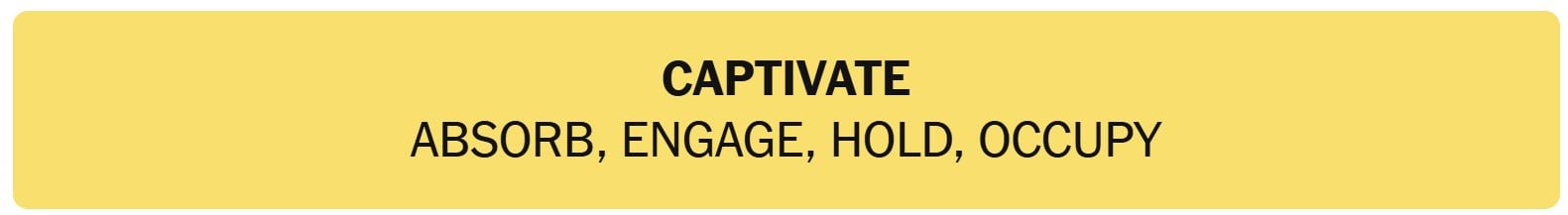 - CAPTIVATE – ABSORB, ENGAGE, HOLD, OCCUPY