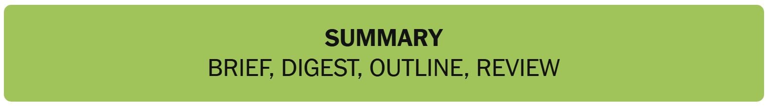 - SUMMARY – BRIEF, DIGEST, OUTLINE, REVIEW