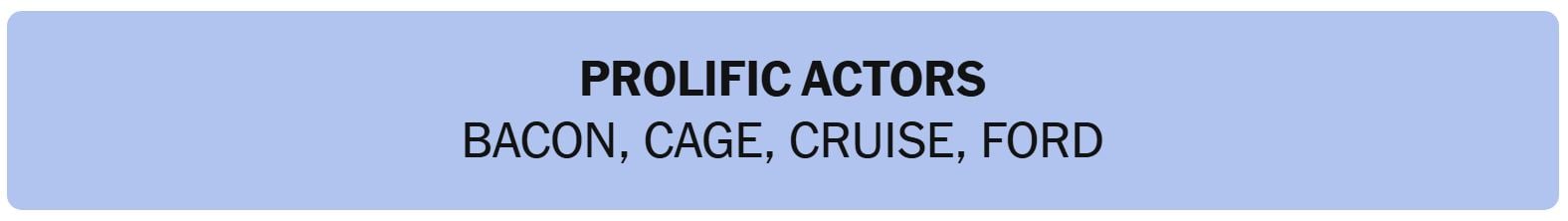 - PROLIFIC ACTORS – BACON, CAGE, CRUISE, FORD