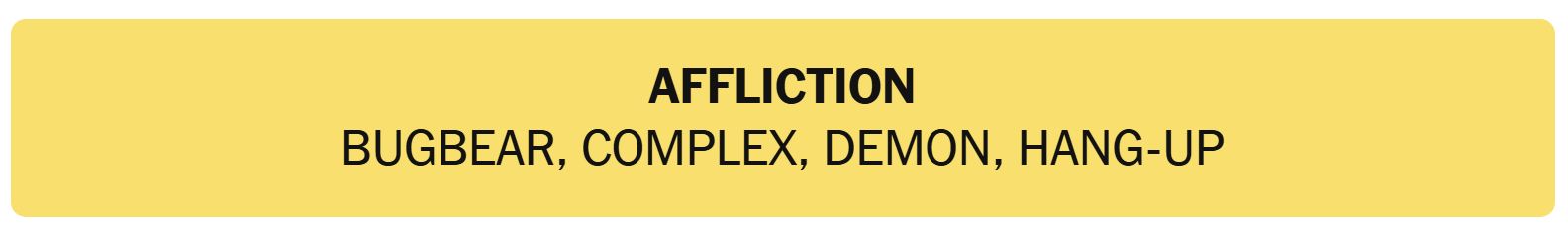 - AFFLICTION – BUGBEAR, COMPLEX, DEMON, HANG-UP