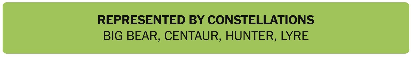 - REPRESENTED BY CONSTELLATION – BIG BEAR, CENTAUR, HUNTER, LYRE