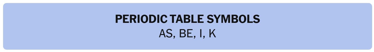 - PERIODIC TABLE SYMBOLS – AS, BE, I, K