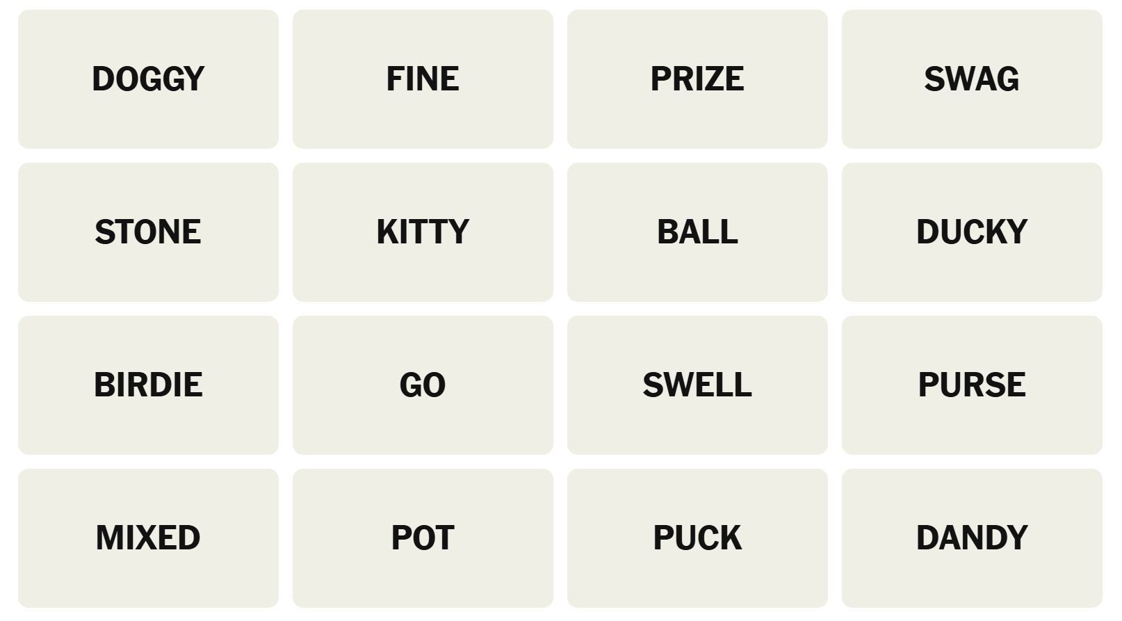 - Hint 2: DANDY and SWELL are in the same group.