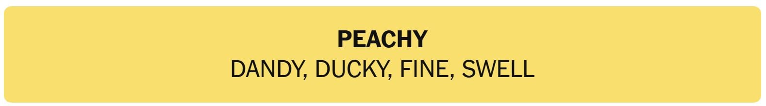 - PEACHY – DANDY, DUCKY, FINE, SWELL