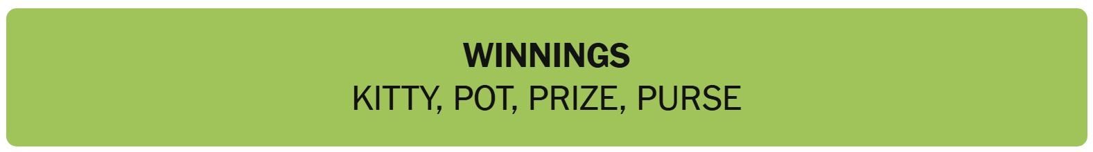 - WINNINGS – KITTY, POT, PRIZE, PURSE