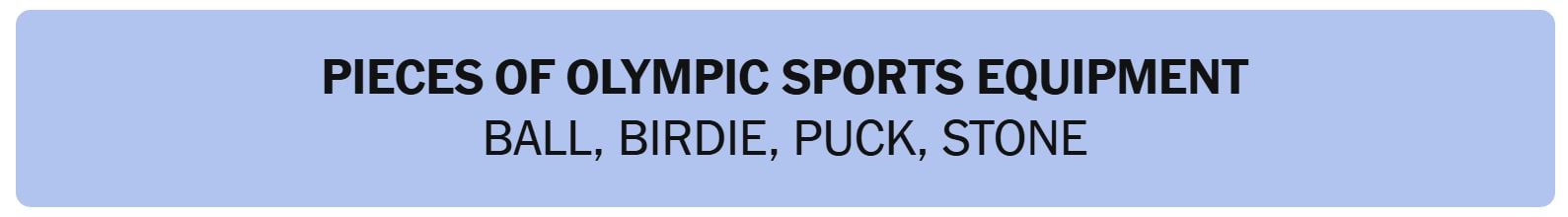 - Hint 1: One of the groups is “PIECES OF OLYMPIC SPORTS EQUIPMENT“.