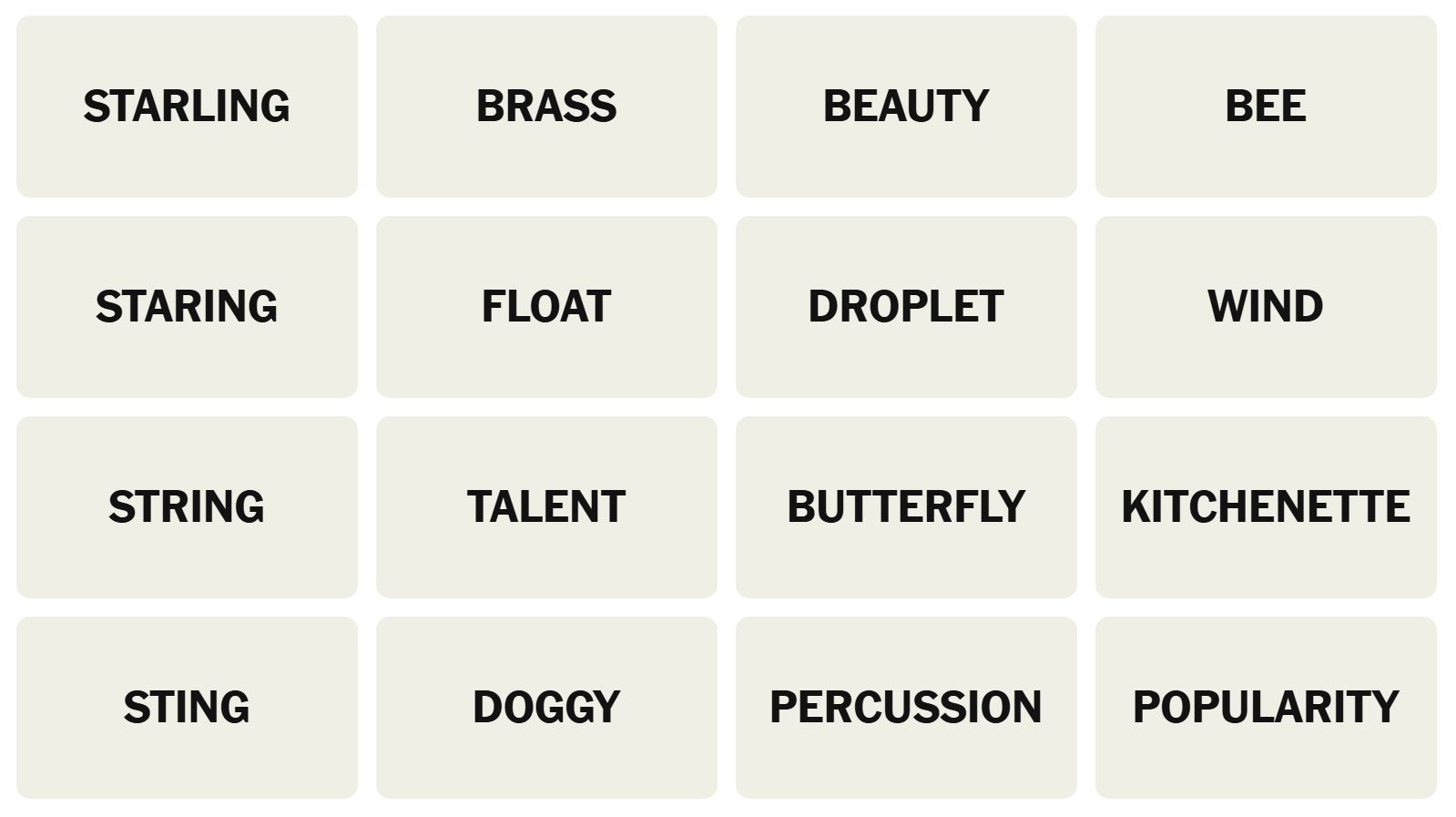 - Hint 2: BEAUTY and TALENT are in the same group.