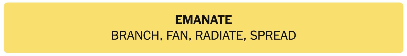 - EMANATE – BRANCH, FAN, RADIATE, SPREAD
