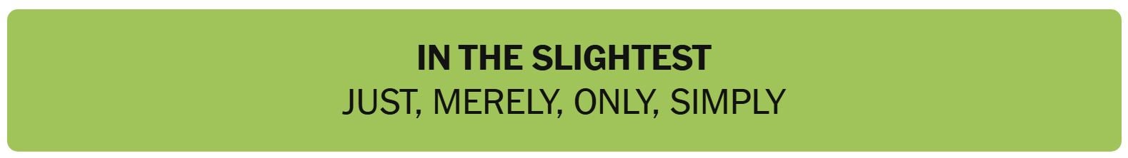 - IN THE SLIGHTEST – JEST, MERELY, ONLY, SIMPLY