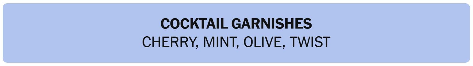 - COCKTAIL GARNISHES – CHERRY, MINT, OLIVE, TWIST