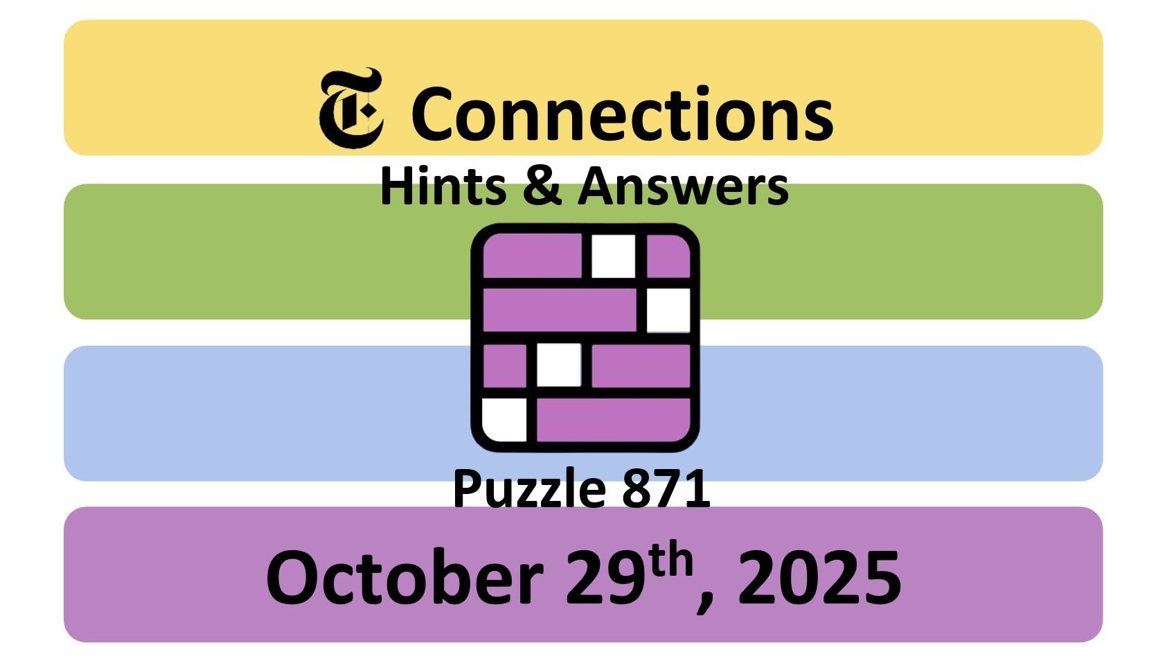Here are the answers for the NYT Connections puzzle #871 today, released on October 29th, 2025, and some hints to help you solve them.