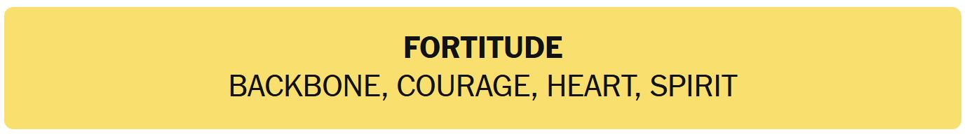 - FORTITUDE – BACKBONE, COURAGE, HEART, SPIRIT