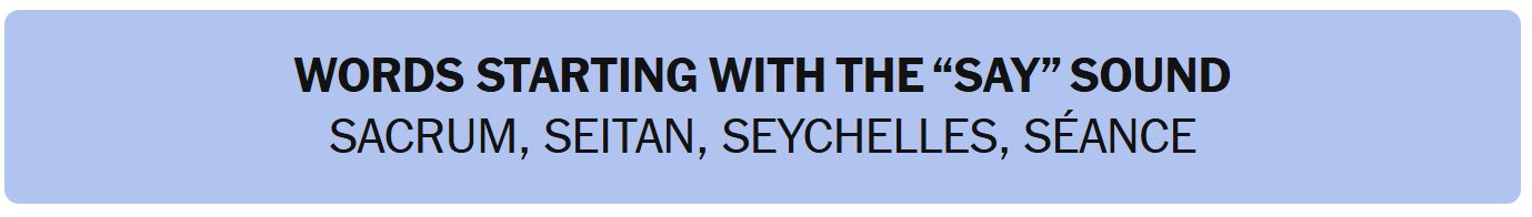 - WORDS STARTING WITH THE “SAY” SOUND – SACRUM, SEITAN, SEYCHELLES, SÉANCE