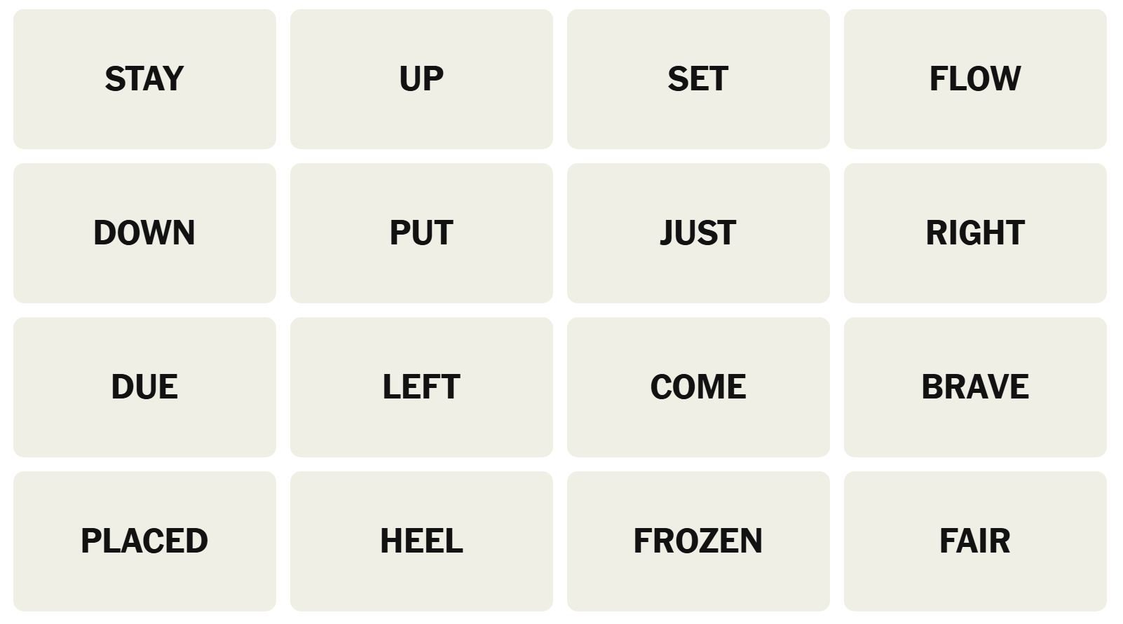 There are sixteen words for the Connection puzzles, which are: