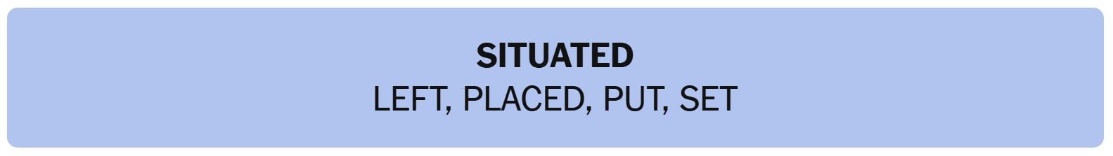 - SITUATED – LEFT, PLACED, PUT, SET