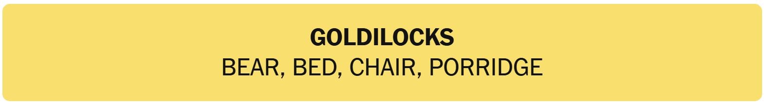 - GOLDILOCKS – BEAR, BED, CHAIR, PORRIDGE