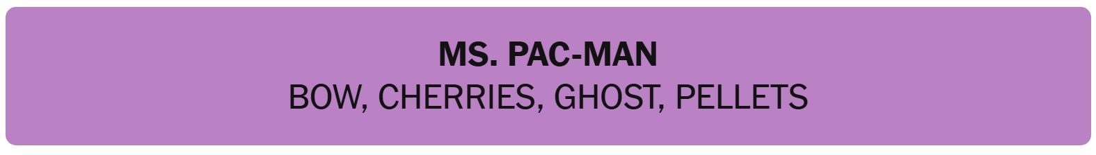 - MS. PAC-MAN – BOW, CHERRIES, GHOST, PELLETS